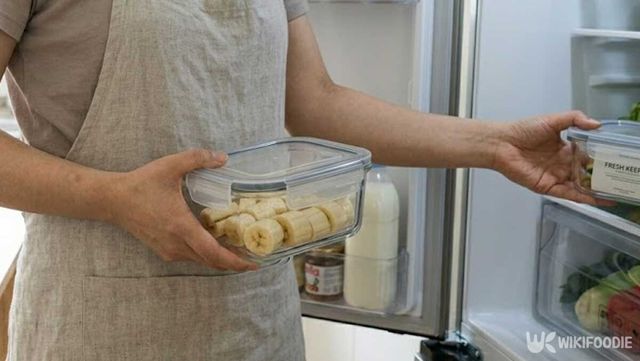 꼭지를 잘라낸 뒤에는 잘린 단면을 안쪽으로 감싸 덮어준다. 이렇게 한 바나나를 밀폐용기에 넣어 냉장고 야채칸에 보관하면 된다. 야채칸은 냉장고 안에서 온도가 비교적 안정적으로 유지되는 공간이라 바나나 보관에 적합하다.