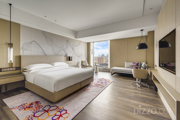 2021년 정식 개관한 가오슝 메리어트 호텔은 구산구에 위치한 E SKY LAND 복합단지의 핵심 시설이다. 지상 33층 높이에 700실 규모를 갖추고 있으며 전 객실에 통창을 설치해 가오슝 도심 또는 아오쯔디 삼림공원 전망을 제공한다. 객실은 트윈룸 350실·더블룸 150실·스위트룸 150실로 구성되며 최소 면적은 약 46㎡(14평)다.