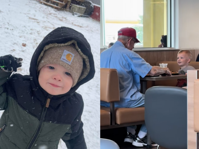 미국 오클라호마의 3세 소년 허디가 맥도날드에서 홀로 식사하던 노인에게 합석 제안해 화제가 되고 있다. 사진=틱톡(@ashlyntaylor88)