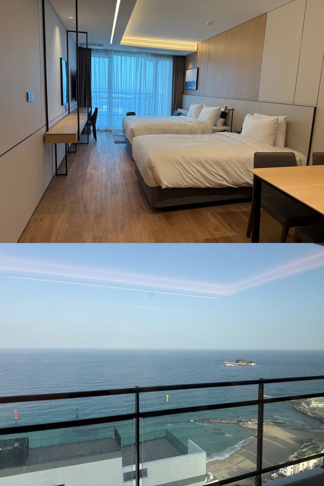 이 호텔의 핵심은 '전 객실 오션뷰'라는 설명보다, 실제 체감되는 시야의 밀도에 가깝다. 바다를 일부 끌어오는 수준이 아니라, 객실 전체가 바다를 향해 열려 있는 구조다.