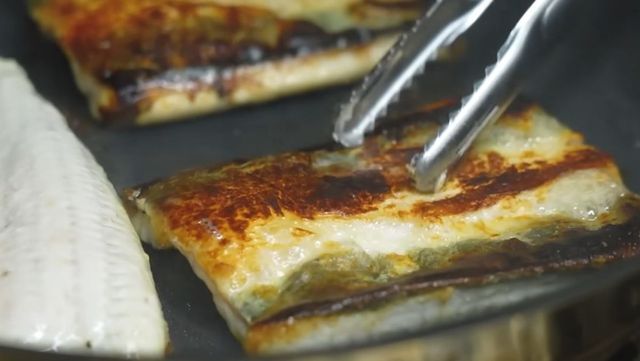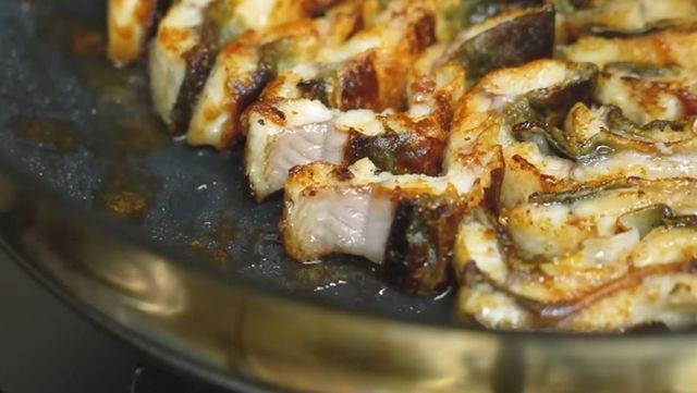 충분히 달궈진 팬에 기름을 두르지 않고 껍질 면부터 굽기 시작하는데, 이때 열기로 인해 살이 말려 올라가는 현상을 막는 것이 관건이다. 조리도구를 이용해 약 1분간 장어를 꾹 눌러주면 수분이 끓는 소리와 함께 살이 평평하게 펴지며 열이 골고루 전달된다.