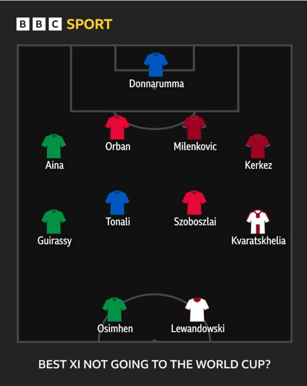 영국 매체 ‘BBC’는 1일(한국시간) 북중미 월드컵에서 볼 수 없는 스타 선수로 베스트 11을 구성했다.