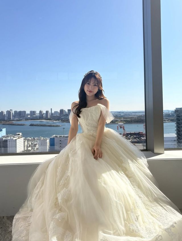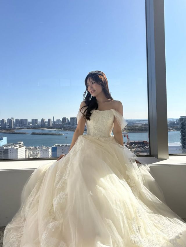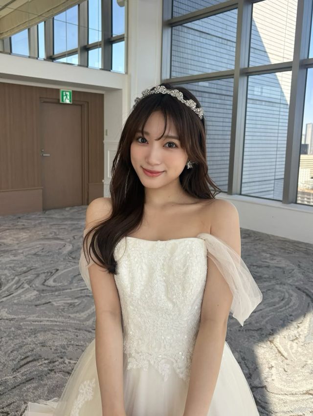 특히 풍성한 실루엣의 드레스와 티아라 스타일 헤어 액세서리를 매치한 모습은 실제 신부를 연상케 하며 팬들의 뜨거운 반응을 이끌어냈다. 밝은 자연광이 들어오는 공간과 창밖 도시 풍경이 어우러지며 화보 같은 완성도를 더했다.