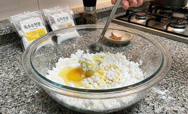 4. 계란 1개를 넣어 반죽을 만든다.