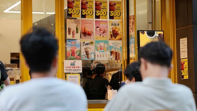 서울 시내의 한 빽다방 매장 앞에 할인 안내문이 붙어있다. / 연합뉴스