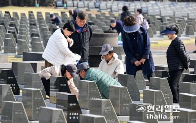 지난달 29일 4·3평화공원 행방불명인 표석을 찾은 유족들. 강희만기자