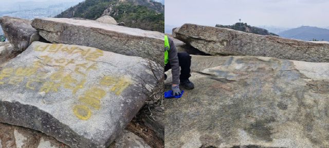 복원 작업도 신속히 이뤄졌다. 시너를 통해 바위의 낙서를 제거하는 작업은 이날 오전 중 마친 것으로 파악된다.