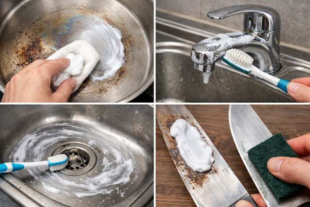 주방 칼의 녹 제거에도 활용된다. 녹이 발생한 부위에 치약을 두껍게 도포한 후 10분 정도 방치했다가 수세미로 문지르면 녹이 연마되어 떨어져 나간다. 이는 치약 속 불소 성분이 금속 표면의 부식을 억제하고 일시적인 보호막을 형성하기 때문이다.