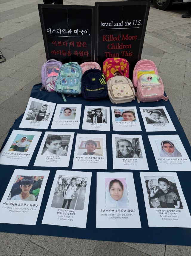 3월 29일 팔레스타인 땅의 날 50주년 기념 집회에서 최근 이란 미나브 초등학교에서 숨진 어린이를 포함하여 이스라엘과 미국에 의해 살해된 어린이들의 사진과 가방을 전시한 추모 공간을 마련했다.