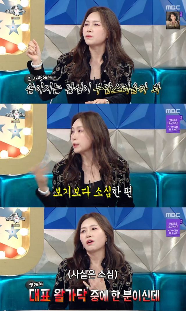 조갑경은 "톱스타 울렁증 있다"면서 "유명한 사람을 만나면 그 사람에게 쏟아지는 관심이 부담스러울까봐 괜히 피하게 된다"고 말했다.