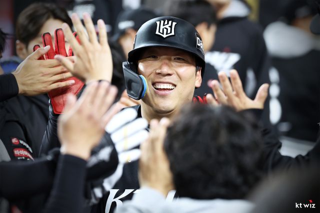 먼저 웃은 팀은 KT였다. 1회 안현민의 솔로포로 기선제압했다. 하지만 한화도 1회 말 페라자의 안타와 문현빈의 2점포로 역전했다. KT는 3회 상대 실책으로 동점을 만들었으나, 5회 강백호의 땅볼 타점, 6회 심우준의 적시타로 앞서 나갔다.