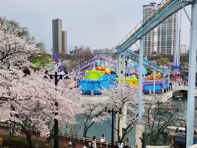 덜덜 떨리는 다리를 진정시키며 이동한 곳은 '자이로 스핀'. '메이플스토리'의 마스코트 '핑크빈'이 중앙에서 반겨주는 이 기구는 석촌호수를 등지고 바이킹처럼 허공을 갈랐다. 기존 놀이기구들에 비해 규모는 콤팩트하지만, 속도가 붙을수록 느껴지는 중력 가속도는 고개를 절로 숙이게 만들 정도로 매서웠다. '가족형'이라는 타이틀 뒤에 숨겨진 맵싸한 스릴이 일품이다.