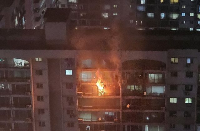 지난달 23일 오후 서울 송파구 신천동에 있는 장미아파트에서 화재가 발생한 모습. 당시 소방 당국은 화재 발생 1시간여 만에 불을 완전히 껐다고 밝혔다. 자료 사진. 서울 아파트 단지의 절반 가까이는 스프링클러가 없는 것으로 나타났다. / 연합뉴스