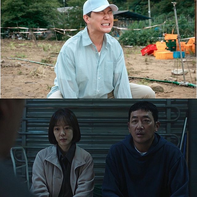 하정우가 연기하는 기수종은 회차를 거듭할수록 광기 어린 ‘악’의 얼굴을 꺼내 든다. 산더미처럼 불어난 대출 이자를 감당하기 위해 가짜 납치극에 가담하더니, 급기야 건물 1층 카페 사장을 냉동고에 감금하는 폭주를 이어간다. 반면 ‘연리리’ 지부로 좌천된 성태훈은 배추 농사 성공이라는 막막한 미션 앞에 놓인다. 퇴사를 고민하면서도 유학 중인 자녀들의 학비를 떠올리며 호미를 쥐는 모습은 현실 가장의 애환 그 자체다. 마을 이장의 텃세에 정면 돌파하며 정정당당하게 생계를 책임지려는 성태훈은 확실히 기수종보다 든든한 아버지의 표상에 가깝다.