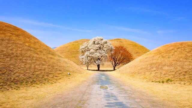 봄철에 대릉원 돌담길을 방문하면 길 양옆으로 오래된 벚나무들이 가지를 뻗어 형성한 화려한 벚꽃 지붕을 만날 수 있다. 특히 대릉원 내부 '미추왕릉' 앞은 숨겨진 벚꽃 명당으로 꼽힌다. 한옥 형태의 정문과 담장 위로 흐드러진 벚꽃이 어우러져 낭만적인 분위기를 자아낸다. 대릉원 입장료는 성인 3000원이다.