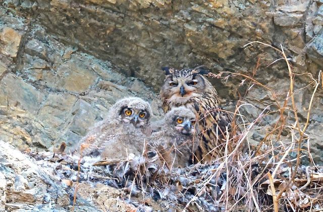 울산시 울주군 암벽에서 발견된 수리부엉이 가족. / 윤기득 작가 제공-연합뉴스