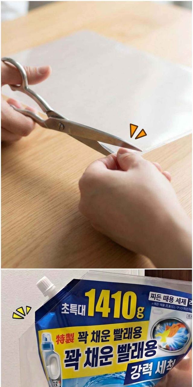 세제 리필할 때마다 입구가 좁아 옆으로 흘러넘치거나 손에 끈적하게 묻는 불편을 겪는 경우가 적지 않다. 전용 깔때기를 따로 구매하면 해결되지만, 사용 빈도가 높지 않아 보관 부담과 비용이 동시에 발생한다. 이런 상황에서 집 안에 흔히 있는 ‘L자 파일’ 하나로 간단히 해결하는 꿀팁이 있어 소개한다.