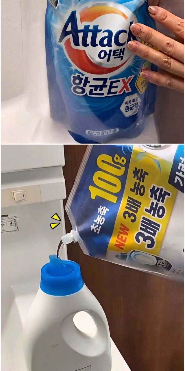 리필용기에 세탁 세제 담으려고 할 때 종종 겪는 '대참사'.