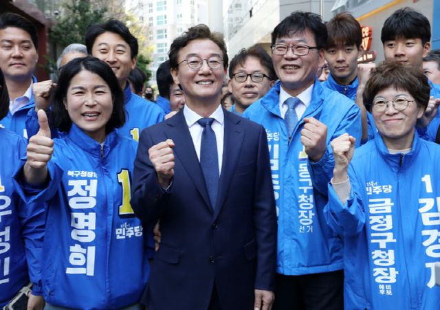 민주당 부산시장 후보 자리를 두고선 전 의원과 이재성 전 민주당 부산시당 위원장이 경쟁을 벌이고 있지만 전 의원 승리가 유력하다. 전 의원은 국민의힘 주자와의 본선 경쟁력에서도 우위를 보이고 있다. 리서치앤리서치가 동아일보 의뢰로 28~29일 실시한 무선 전화면접 여론조사에서 전 의원은 박형준 현 부산시장, 주진우 의원과의 가상대결 결과, 각각 43.7% 대 27.1%, 45.3% 대 25.5%로 오차범위(95% 신뢰수준에 ±3.5%포인트) 밖으로 앞서갔다.(자세한 내용은 중앙선거여론조사심의위원회 참조)
