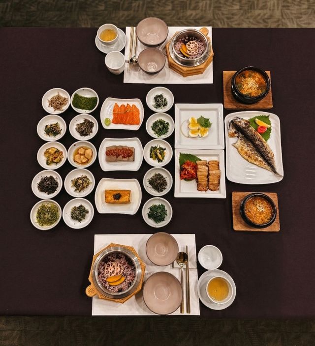 메뉴 구성으로는 숙성 연어장과 함초 소금을 사용한 생선구이, 약재의 풍미가 담긴 한방 수육, 약선 강된장, 버섯 된장찌개를 비롯한 제철 나물 15종이 곁들여져 풍성한 한상을 완성한다.