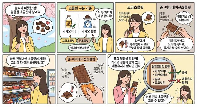 봄이 되면 이상하게 달달한 것이 당긴다. 날이 따뜻해지고 기분이 들뜨면서 초콜릿을 하나씩 집어들게 된다. 마트 진열대 앞에서, 편의점 계산대 옆에서 손이 가는 초콜릿. 그런데 그 많은 제품 중에서 내가 고른 것이 '진짜 초콜릿'인지 아는 사람은 생각보다 많지 않다.