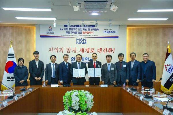 한남대학교와 ㈜한컴인스페이스가 AI GPU인프라의 효율적 운영 등 산학협력 혁신 모델 구축을 위해 두 손을 맞잡았다. 2일 오전 11시 본관 2층 대회의실에서는 업무협약식이 열렸으며 ㈜한컴인스페이스 최명진 대표와 한남대학교 이승철 총장이 협약서를 교환했다. ㈜한컴인스페이스는 위성 지상국 시스템과 위성 이미지 분석 서비스를 제공하는 항공우주 기술회사이며 3D 위성정보 디스플레이 플랫폼 운용, 우주기상 모니터링 등 우주환경 분석 기술을 보유하고 있다. 양 기관은 협약에 따라 AI GPU인프라를 공동 활용하고 AX특화 대학생(대학원생) 인턴십 운영, 우수 인력 채용 연계에 나서게 되며, AX기술자문·정보 교류를 위한 산학협력 자문위원회를 공동 운영한다. 또 AI GPU를 연계한 항공우주, 국방, 재난 안전 등 공동 프로젝트를 개발하고 위성영상 처리 소프트웨어의 공동연구·상호기술 개발 협력에 나서기로 했다.