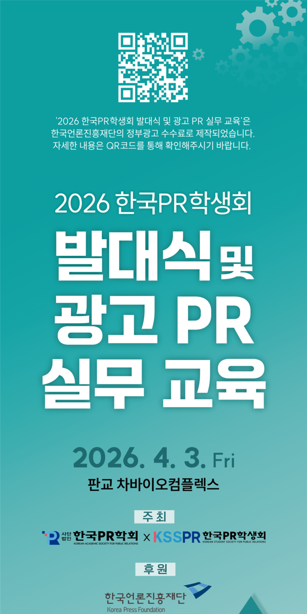 한국PR학회가 3일 판교 차바이오컴플렉스에서 ‘2026 한국PR학생회 발대식 및 광고 PR 실무 교육’을 개최한다.