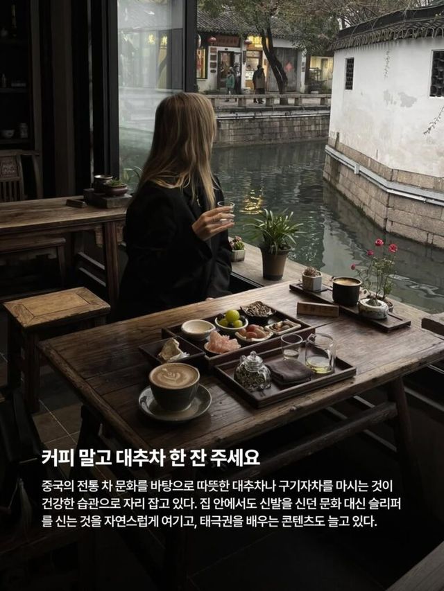 중국식 생활 문화와 이들이 추구하는 느린 삶의 미학이 맞아떨어지며, 이를 그대로 실천하는 것이 트렌디하면서도 건강한 루틴이 되었다. 낯선 동양식 생활 방식이 건강하면서도 신선한 자극으로 받아들여지고 있는 것이다.
