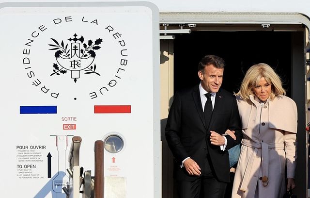 에마뉘엘 마크롱 프랑스 대통령과 브리지트 마크롱 여사가 2일 경기 성남시 서울공항을 통해 방한, 전용기에서 내리고 있다. / 뉴스1