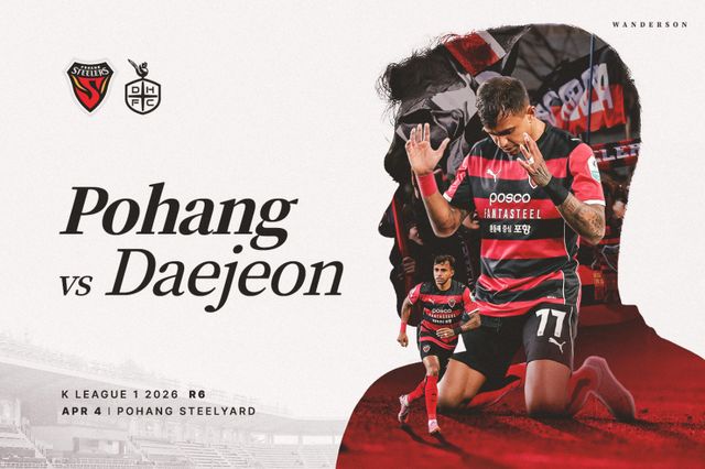 포항은 오는 4일 오후 4시 30분 포항스틸야드에서 대전과 하나은행 K리그1 2026 6라운드 맞대결을 펼친다.