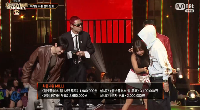 그러나 현장 평가단 투표와 실시간 문자 투표, 실시간 엠넷플러스 앱 투표를 합산한 최종 결과 밀리는 4위를 기록했다.