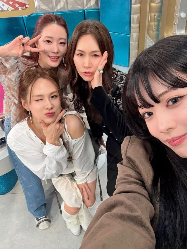 조갑경은 채연과 고우리 옆에 꼭 붙은 채 입술을 내미는 포즈를 취하는가 하면, 꽃받침 포즈로 후배들과 함께 셀카를 찍었다.