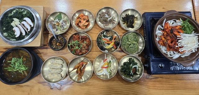 영월군에서 나오는 밥상에는 어수리나물을 비롯해 감자, 표고버섯을 함께 넣어 지은 솥밥이 제공되는데 밥알이 살아 있고 나물 향이 자연스럽게 올라와 반찬 없이 밥만 먹어도 맛나다. 함께 나오는 더덕, 된장국, 제육 등과 다양한 나물 반찬은 재료 본연의 맛을 살려 부담 없이 먹을 수 있는 것도 특징이다.