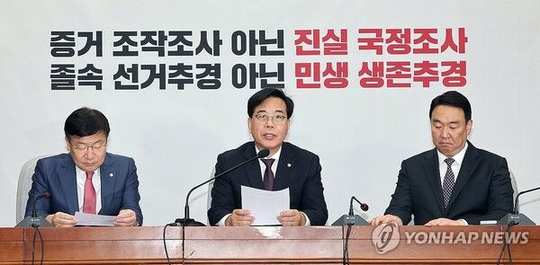 정희용 국민의힘 사무총장은 "트럼프 미 대통령은 이란을 향해 강력한 타격을 언급하는 한편 비협조 국가를 거론하며 우리나라를 특정해 '도움이 되지 않는다'고 말하기도 했다고 한다"며 "지금 우리 외교 안보가 중대한 시험대에 올랐다"고 진단했다. "국익을 최우선으로 하면서도 치밀한 대비가 절실한 상황"이라고 설명했다.