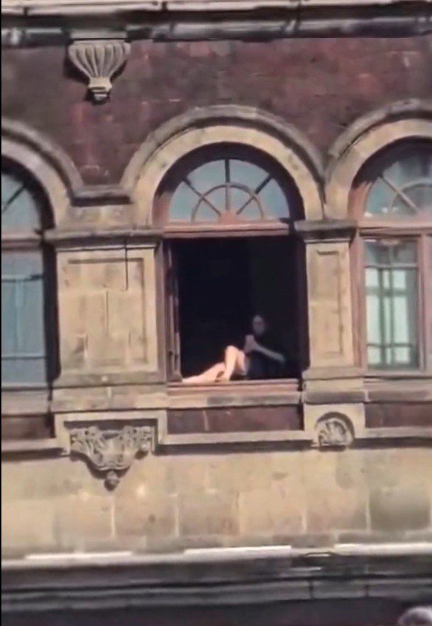 멕시코 재무부 고위 관리가 대통령궁 창가에서 일광욕을 즐기는 모습. 사진=@Vampipe sns 갈무리