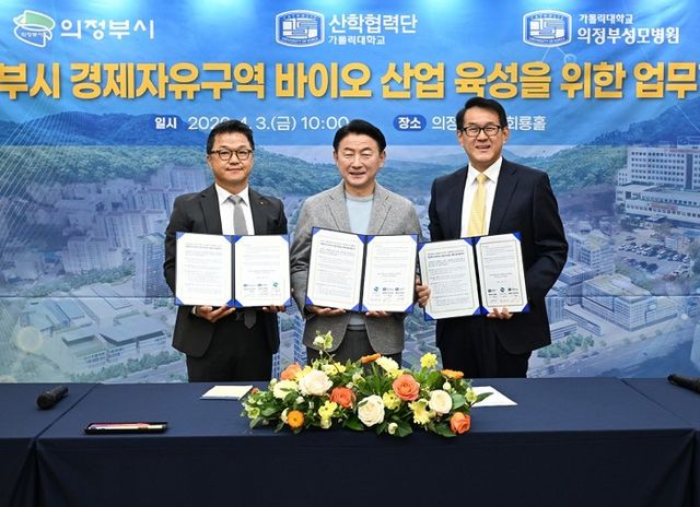 [파이낸셜경제=김영란 기자] 의정부시는 4월 3일 시청 회룡홀에서 가톨릭대학교 의정부성모병원, 가톨릭대학교 산학협력단과 함께 ‘의정부시 경제자유구역 바이오 산업 육성을 위한 업무협약’을 체결했다.