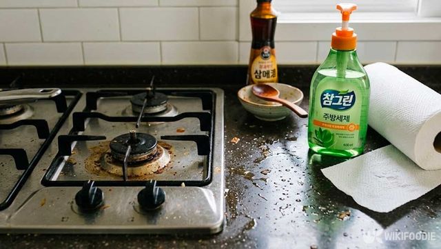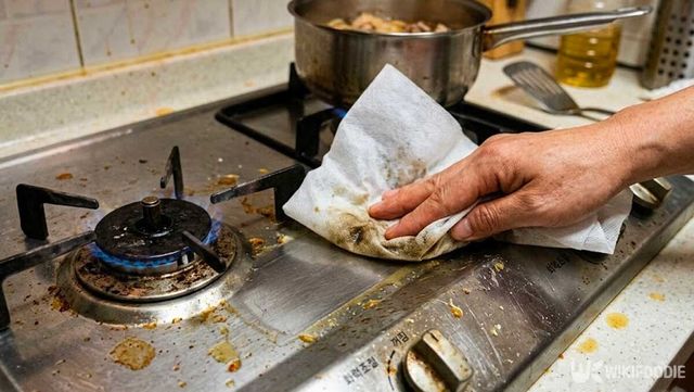 3. 기름때 청소포: 마스크의 섬유 구조를 이용해 주방 기름때를 닦아내면 행주 오염 걱정 없이 간편하고 위생적인 청소가 가능하다.