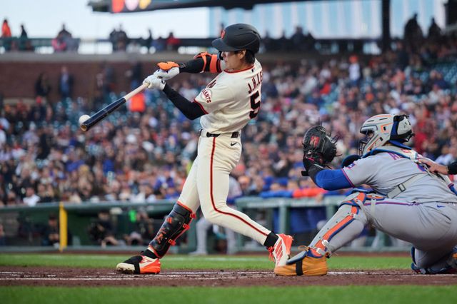 이정후는 1회 말 샌프란시스코가 2-1로 앞선 2사 2루에서 첫 타석에 나서 메츠 선발 투수 데이비드 피터슨을 상대했다. 91.9마일 높은 코스 초구 포심 패스트볼(직구)에 배트를 돌린 이정후는 99.5마일 총알 타구를 생산했지만, 메츠 1루수 마크 비엔토스의 호수비에 안타를 빼앗겼다. 하지만 야수와 투수 사이 베이스 커버 과정에서 호흡이 맞지 않았고, 공이 떨어진 사이 2루 주자 맷 채프먼이 홈을 밟았다. 타구의 공식 기록은 실책이었지만 이정후도 팀 득점에 기여했다.