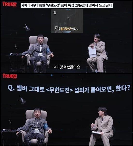 2일 공개된 유튜브 채널 ‘입만 열면’ 영상에는 ‘무도 마지막 회로 돌아가고 싶대…’라는 제목으로 정준하와 박명수가 출연해 거짓말 탐지기를 착용한 채 토크를 진행했다.