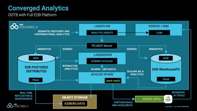 EDB has expanded its integration with NVIDIA AI infrastructure to accelerate Postgres analytics. By combining NVIDIA cuDF for Apache Spark with EDB Postgres AI, the company says it can speed up analysis of datasets larger than 3TB by up to 50 to 100 times while strengthening governance, security and operational control for agentic AI workloads.