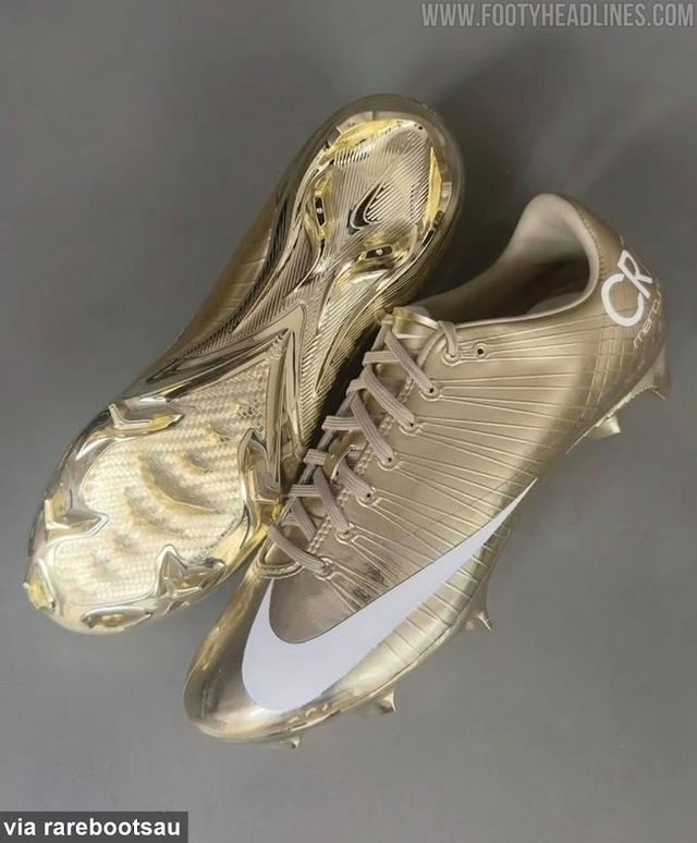 축구 용품 전문 매체 ‘푸티 헤드라인스’는 2일(한국시간) “골드 나이키 머큐리얼 베이퍼 슈퍼플라이 1 CR7 2026 축구화가 유출됐다”라고 전했다.