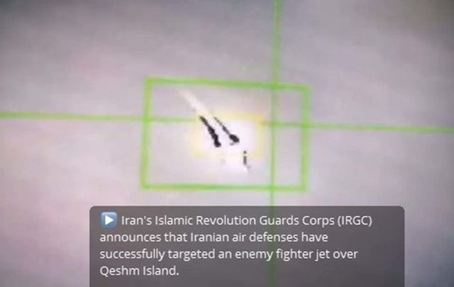 IRGC는 자국 방공망이 게슘섬 상공에서 적 전투기를 성공적으로 타격했다고 별도 성명을 통해 발표했으며, 이란 반관영 파르스 통신은 해당 전투기가 게슘섬과 헹감섬 사이 해상으로 추락했다고 전했다. 이란 매체들은 격추 및 추락하는 모습으로 보이는 장면이 담긴 25초짜리 흐릿한 동영상도 공개했다.