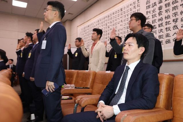 회의장 밖에서 박 검사는 “선서 거부 시 사유를 소명하게 돼 있는데 왜 법에 따른 절차를 못하게 하느냐”며 “이건 위헌·위법인 국정조사를 그대로 입증하는 일”이라고 주장했다. 이어 “만약 특검이 공소 취소를 안 한다고 약속한다면 지금 바로 선서하겠다”고 덧붙였다.
