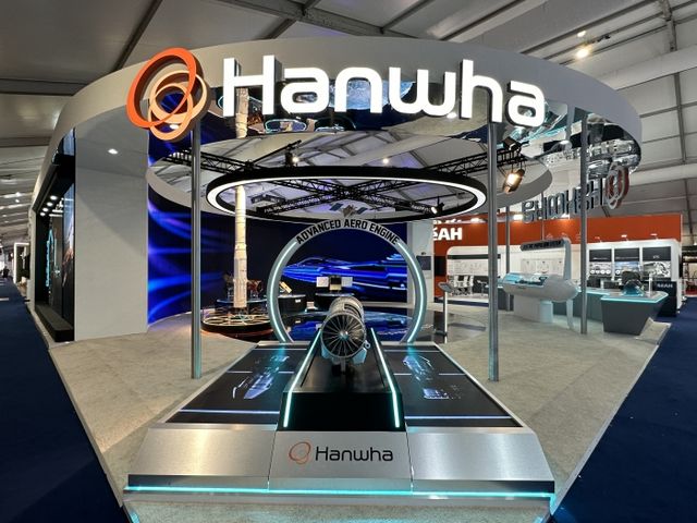22~26일(현지시간) 지난 2024년 영국 판버러 공항에서 열리는 '판버러 에어쇼'에 참가한 한화 통합전시관 전경 사진. 사진=한화에어로스페이스 제공