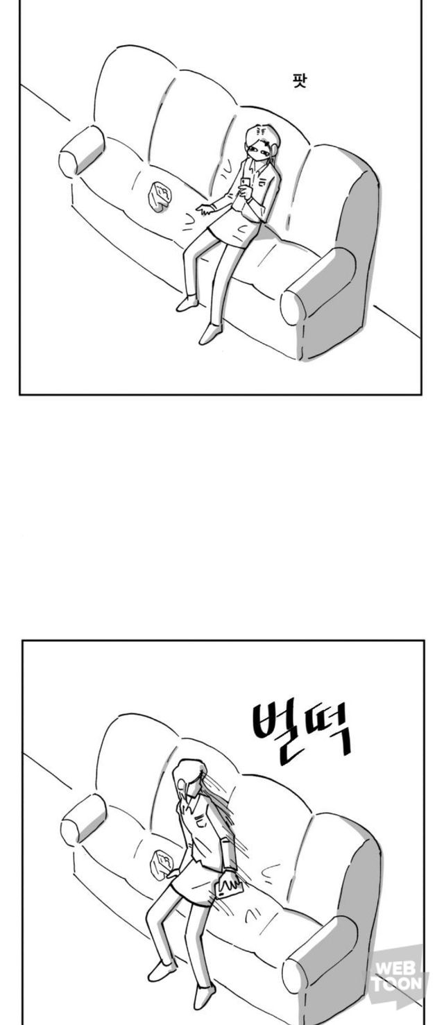 몸이 다시 소파에 앉은 상태로 되돌아갑니다.