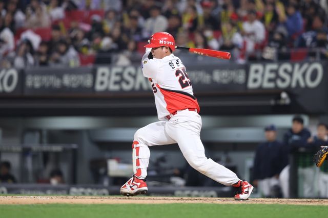 KIA는 8이닝 만에 침묵을 깼다. 8회말 선두타자 한준수가 김영규의 5구 144km/h 직구를 잡아당겨 우중간 담장을 넘기는 솔로 아치를 그렸다. 한준수의 시즌 1호 홈런.