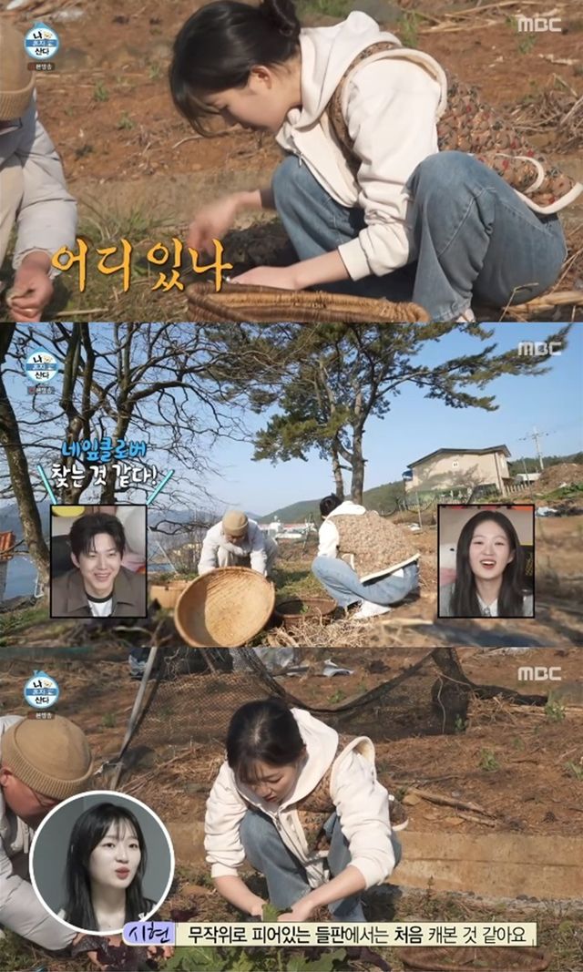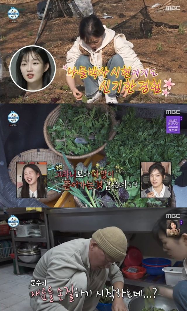 김시현은 첫 번째 스폿에서 갓을 시작으로 머위, 광대나물을 뜯었다.