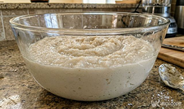 4. 갈아낸 재료에 찹쌀 풀과 고춧가루를 섞은 뒤, 색이 고와지도록 1시간 동안 휴식 시간을 준다.