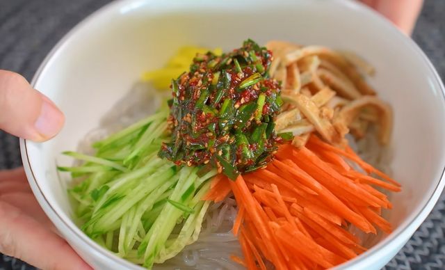 부추비빔당면의 가장 큰 장점은 조리 과정이 단순하다는 것이다. 먼저 당면을 미지근한 물에 20~30분 정도 불린 뒤, 끓는 물에 5~6분 정도 삶아준다. 삶은 당면은 찬물에 헹궈 전분기를 제거하고, 물기를 충분히 빼야 한다. 이 과정이 제대로 되지 않으면 나중에 양념이 제대로 배지 않고 질척해질 수 있다.