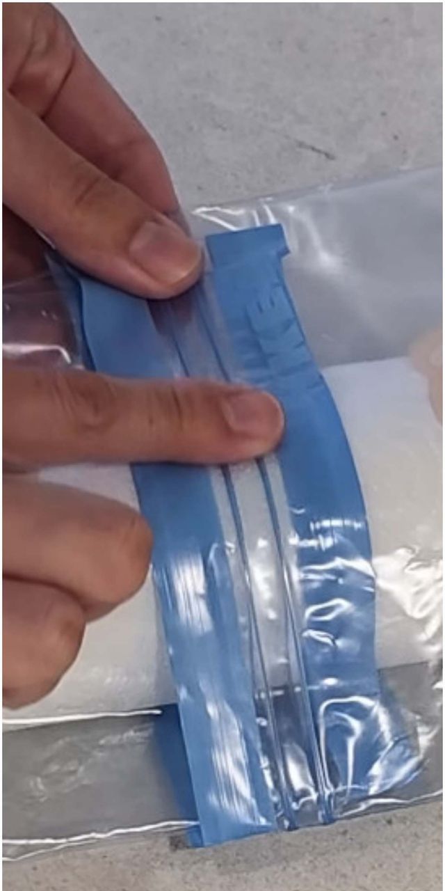 이 방법의 핵심은 지퍼백 하나를 뒤집는 데 있다. 지퍼백의 입구 부분은 ‘암수 구조’로 되어 있어 서로 맞물리도록 설계돼 있다. 이 구조를 반대로 활용하면 두 개의 지퍼백을 하나처럼 연결할 수 있다.